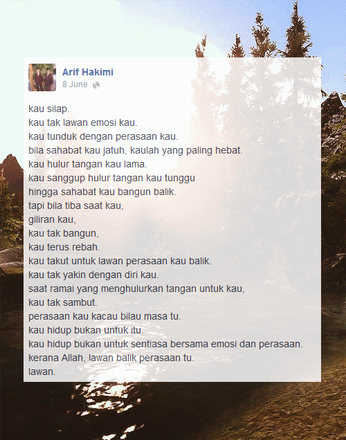 Saya tahu, bukan mudah berurusan dengan gelojak emosi disaat ego kita seakan dicabar.